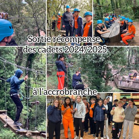 Les 17 cadets de la sécurité civile du collège ont été récompensés pour leur investissement et leur engagement pendant leur année de formation en 5eme. Ils ont pu profiter d’une superbe journée le vendredi 26 septembre commencée par la visite guidée de l’entreprise Eyguebelle avec un entretien du responsable sécurité environnement qui a été suivi d’une bonne partie de rires et de sensations garanties à l’accrobranche voisin. Encore une fois les cadets ont été félicités pour leur exemplarité, leur gentillesse et leur solidarité. Le collège les remercie et est très fier de la promotion 2024-2025. Merci à toutes et tous. Nous attendons et espérons nombreux les nouveaux cadets de la sécurité civile 2025-2026 pour une réussite tout aussi belle !