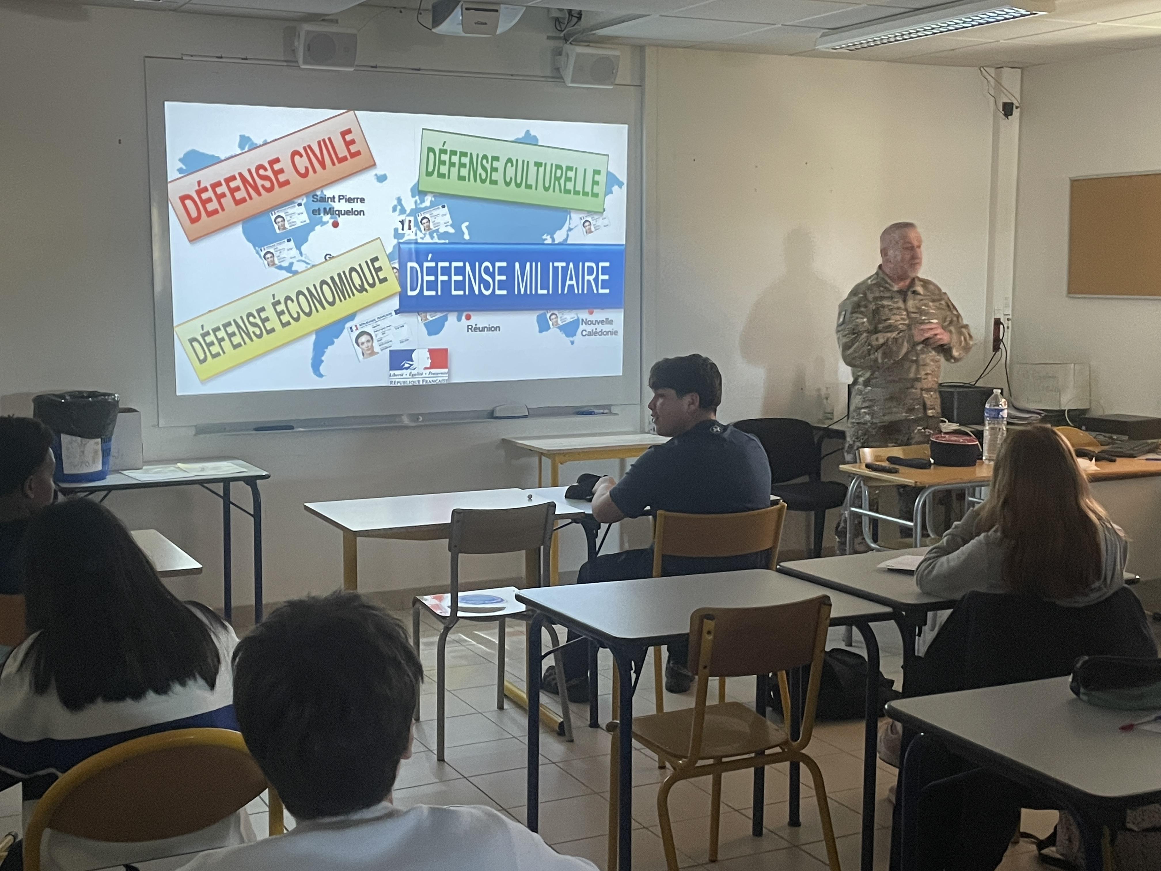 Cette éducation est obligatoire depuis 1997 à la suite de la suspension du service national. L'objectif est de faire comprendre aux élèves les enjeux de défense de notre nation. Les élèves ont donc pu écouter attentivement l'adjudant-chef HENNERON qui leur a transmis des connaissances essentielles sur les missions des armées françaises mais aussi les informations importantes les concernant : le recensement à 16 ans en mairie, préalable indispensable à la JDC obligatoire (journée défense citoyenne) .
