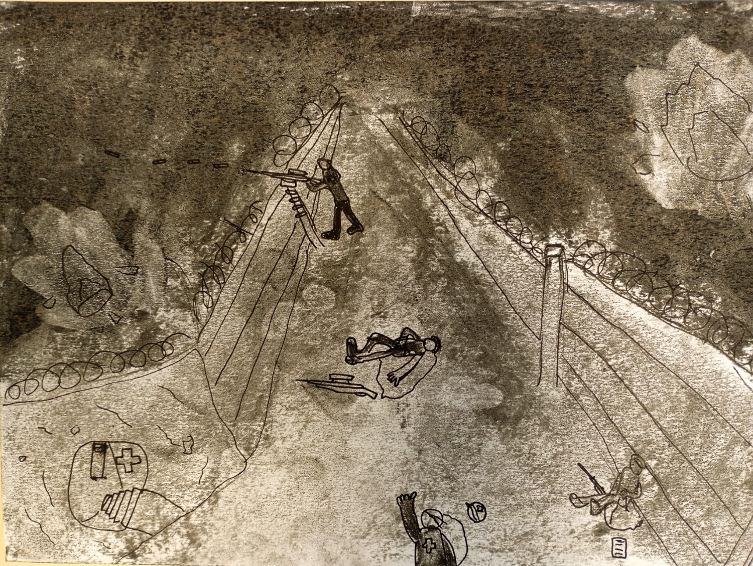 Malheureusement je vais y retourner.Tu sais petit frère je repense beaucoup au moment où je suis arrivé sur le front, c’était un soir de novembre tu venais de rentrer à la maison et moi en enfer
